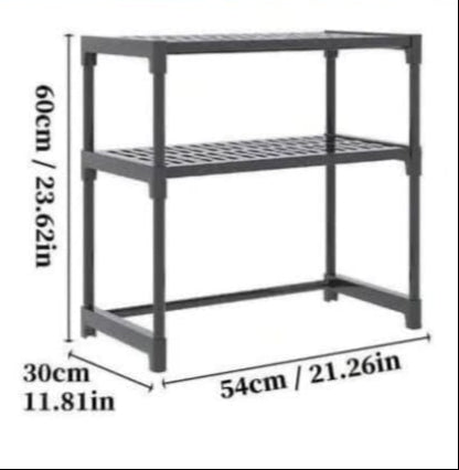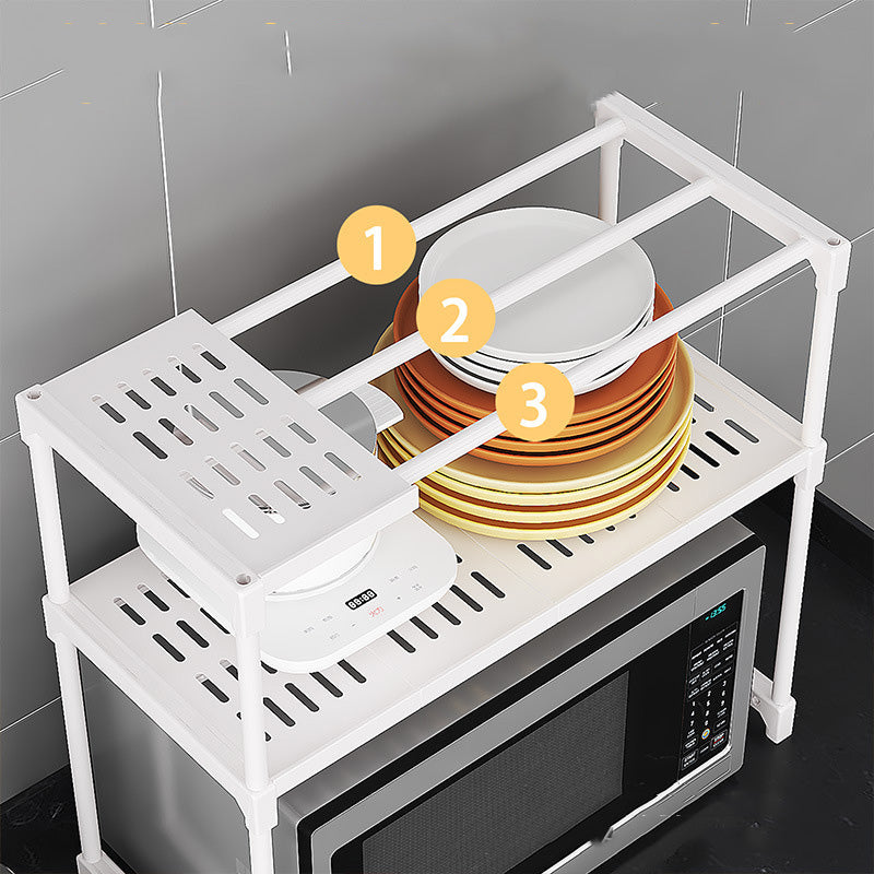 ProductĀ Specification:FullĀ heightĀ 46cm,2Ā tiersĀ LowerĀ tierĀ upĀ toĀ 40cm,widthĀ 36cm,lengthĀ 40-60cm;Rust-resistantĀ coatingĀ onĀ theĀ exterior,smoothĀ surface.Ā PerfectĀ forĀ microwaveĀ ovensĀ andĀ otherĀ kitchenĀ appliances.
