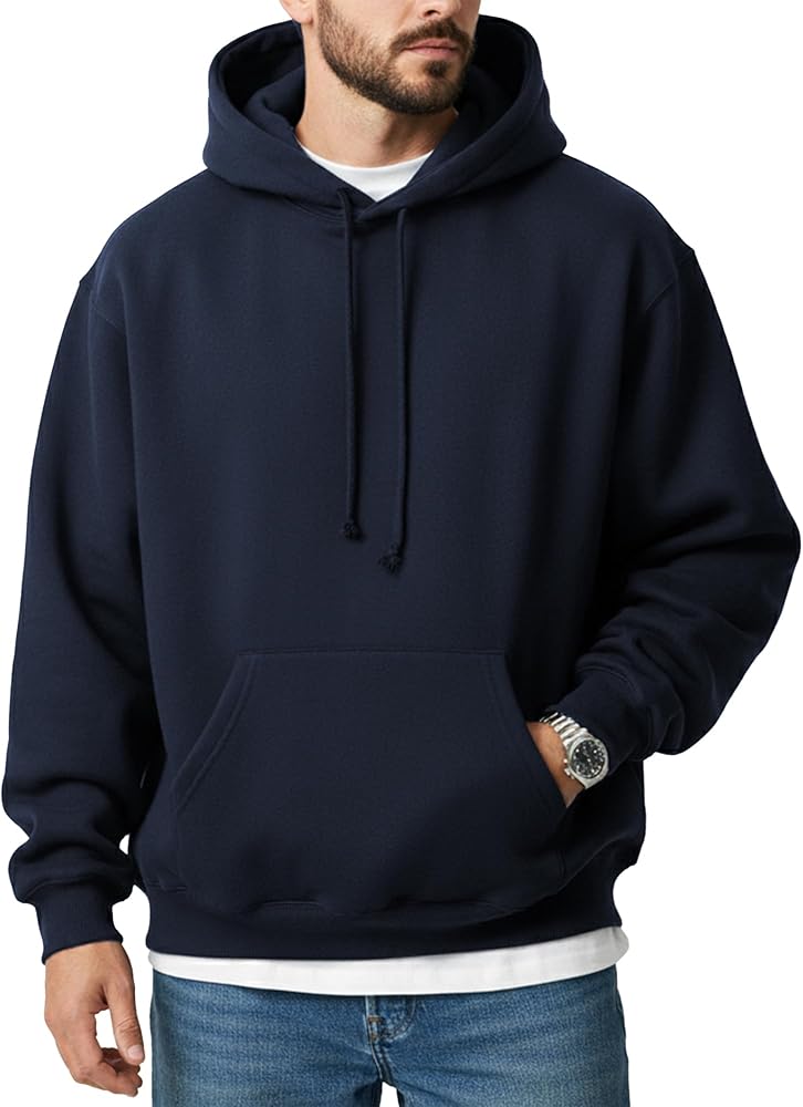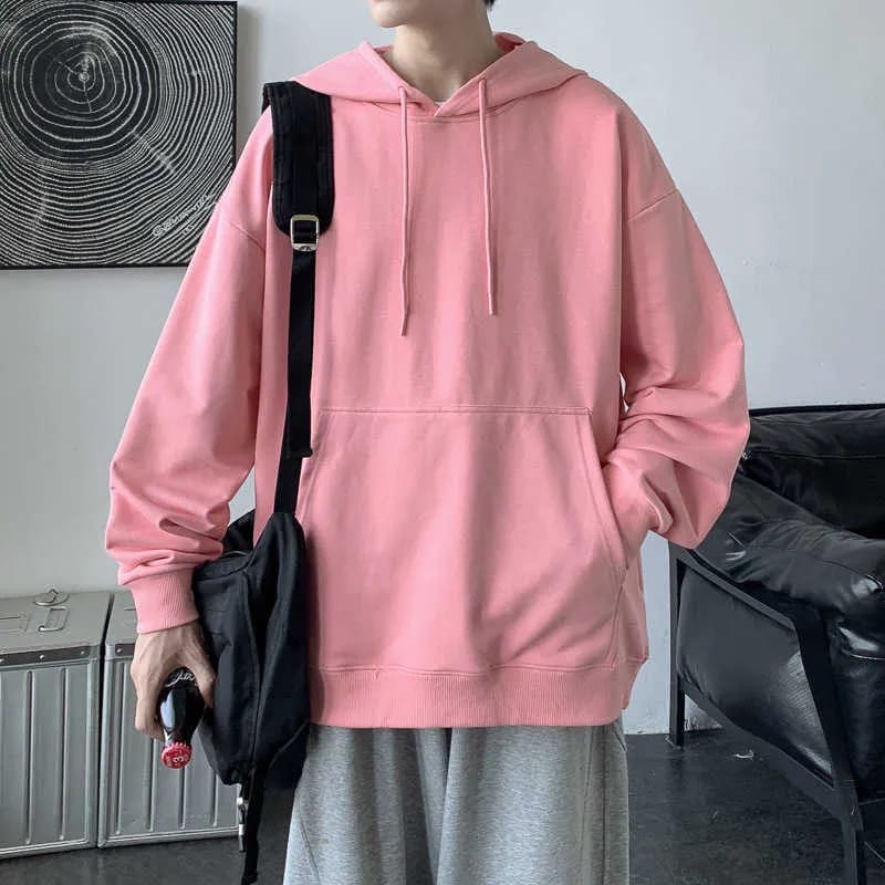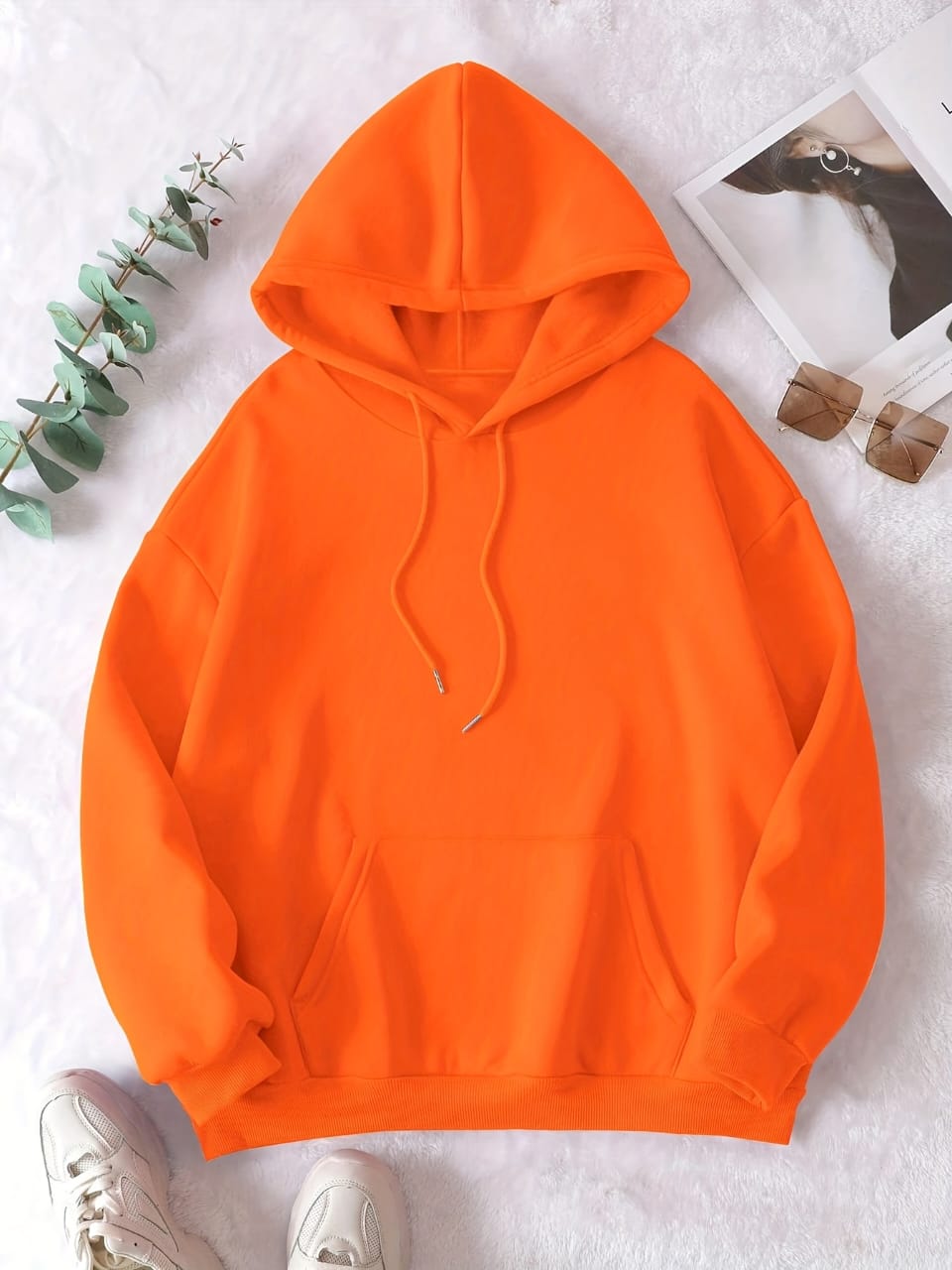 A hoodie is an upper-body garment, specifically a type of sweatshirt, characterized by an integrated hood that can cover the head and neck. Common features include a front pocket (often a kangaroo pouch), elastic cuffs and hem, and optional drawstrings to adjust the hood's tightness. Hoodies are made from various fabrics like cotton or fleece and are available in pullover or zip-up styles, designed for both comfort and protection from the elements. Β
