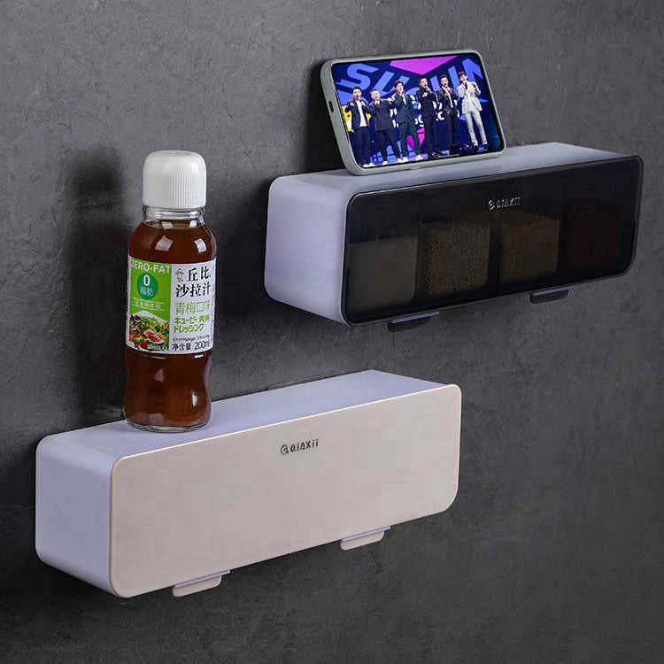 WALLĀ MOUNTINGĀ TheĀ spiceĀ boxĀ adoptsĀ punch-freeĀ wallĀ hanger,Ā whichĀ isĀ easierĀ toĀ useĀ withoutĀ destroyingĀ theĀ wall,Ā savingĀ countertopĀ space.